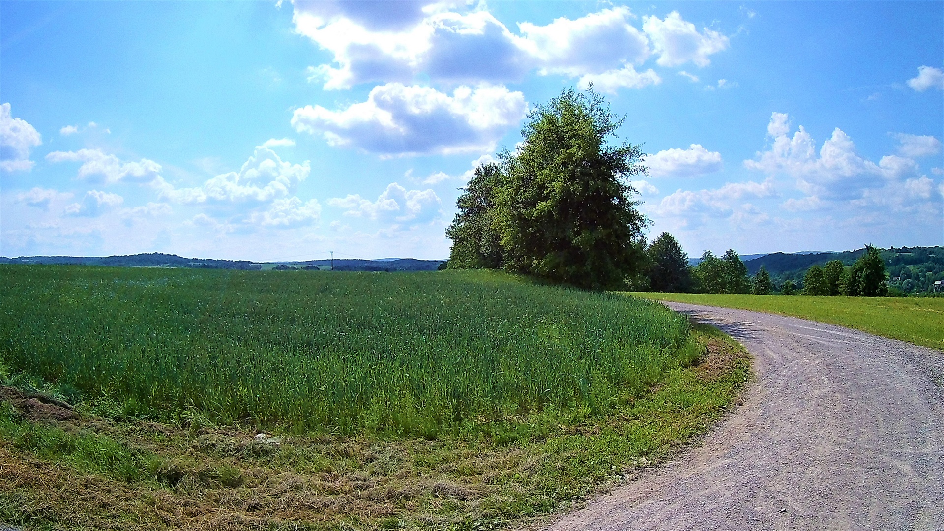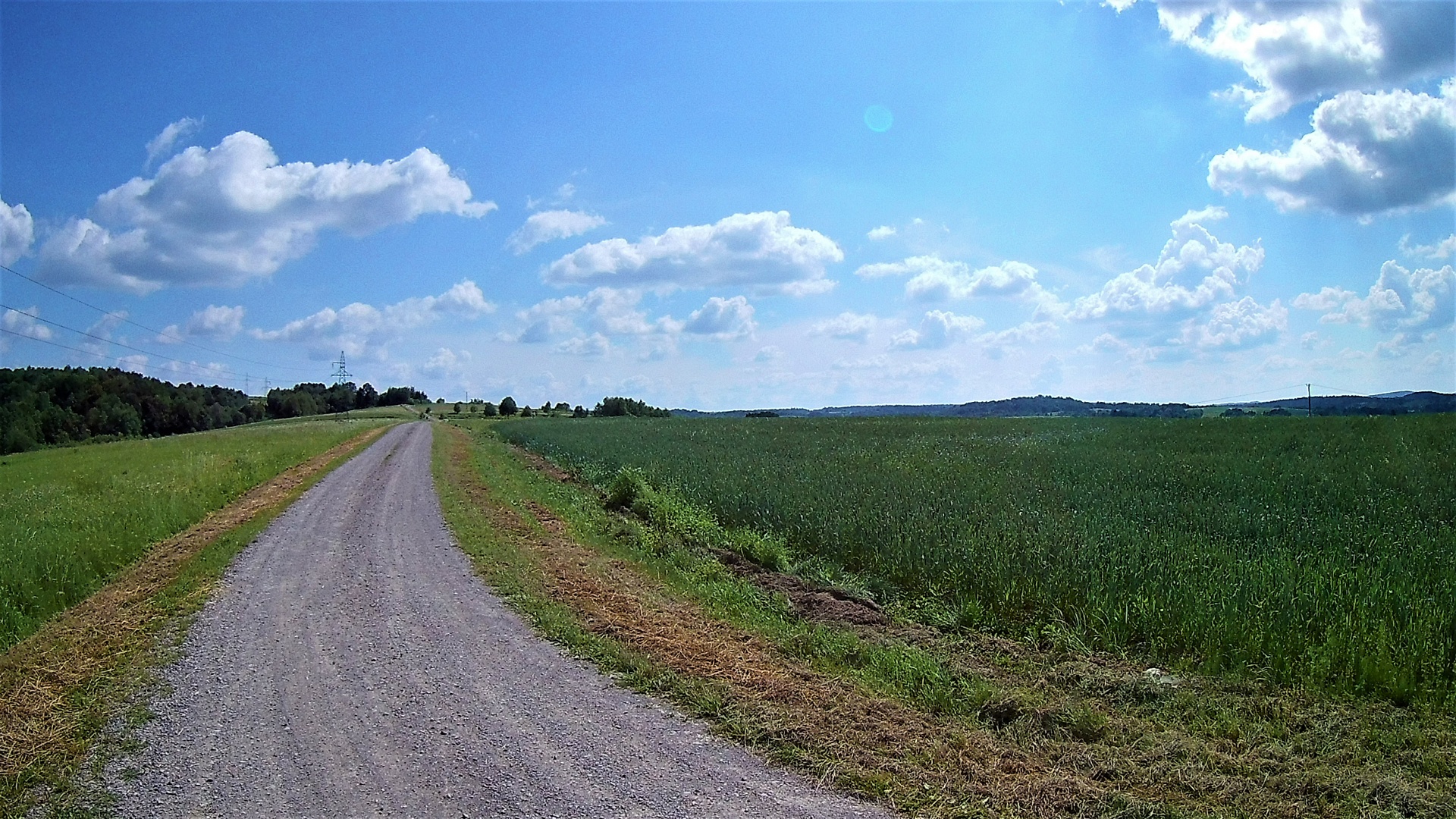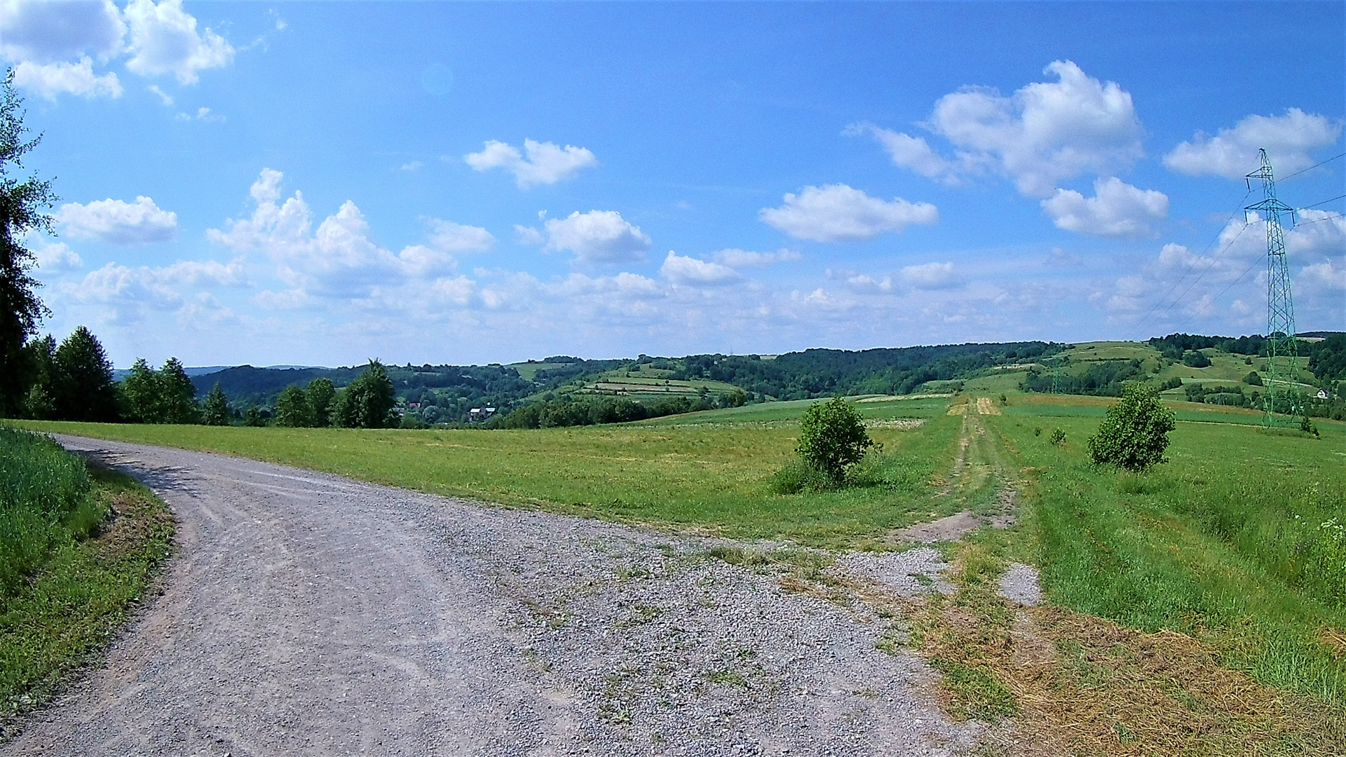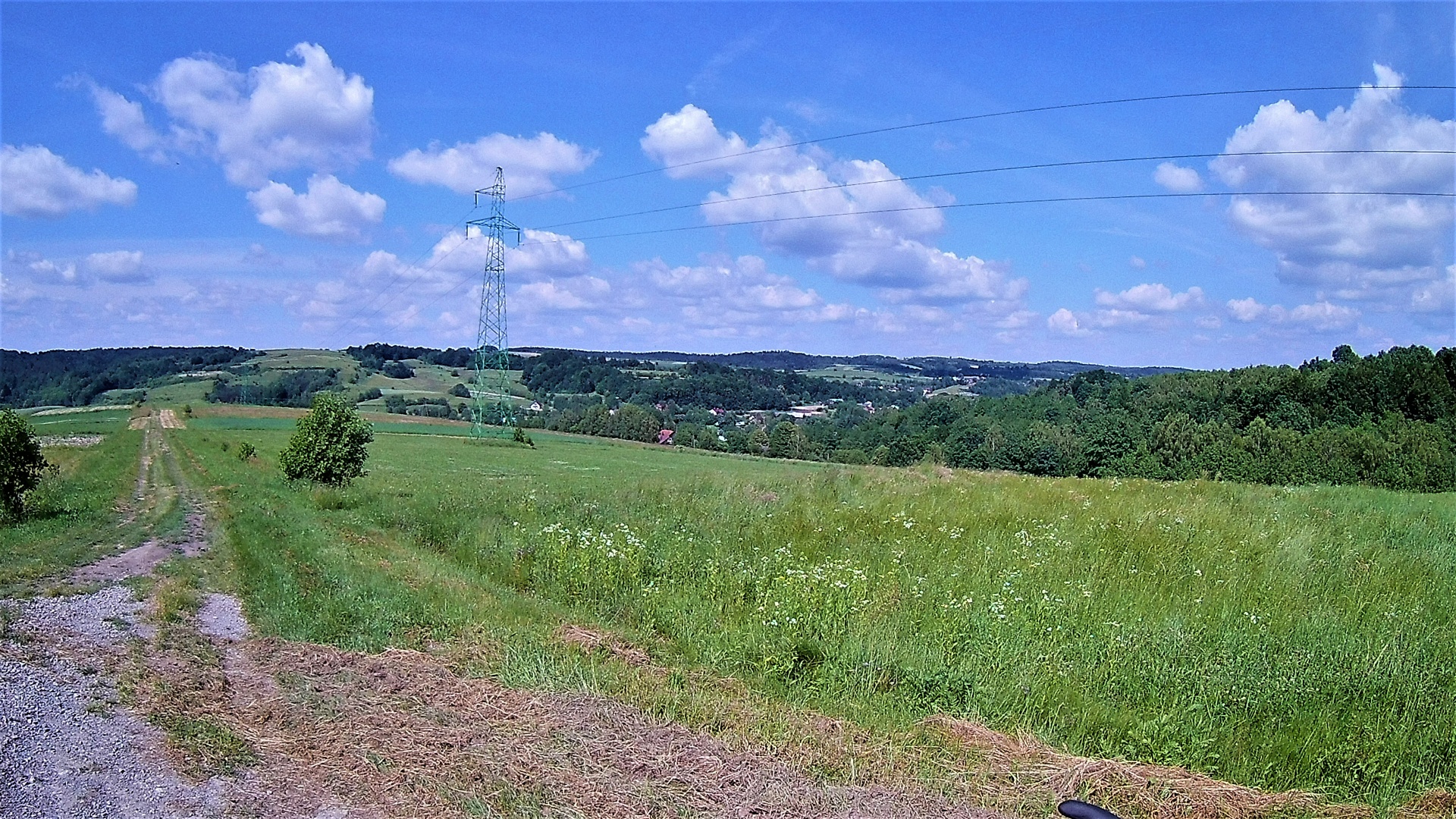 Z Rzeszowa za start przyjąłem GreenVelo przy zaporze. Stamtąd ścieżka rowerowa leci wzdłuż zalewu, obok żwirowni (kąpielisko) i dalej w kierunku na Budziwój. Wzdłuż ulicy Kwiatkowskiego od delikatesów Centrum musimy się już poruszać drogą asfaltową a nie ścieżką. Oznakowanie na tym odcinku jest symboliczne – poznikały tabliczki GV i ktoś przyjezdny bez nawigacji i mapy będzie miał problem. Z końca ul. Kwiatkowskiego i JPII skręcamy w prawo i zaraz za szkołą w lewo w kierunku Hermanowej. I od tego miejsca zaczyna się podjazd. Stromy. Wymagający. Owszem jest ruch samochodowy, ale niezbyt wielkie natężenie. Na końcu tego podjazdu w lesie w Przylasku jest nagroda. Z MORa można skręcić w lewo do lasu i dojechać do źródełka z pyszną wodą. Dalej mamy fajny zjazd – nagroda nr 2 za wysiłek podjazdu. Szlak GV dalej leci to drogami asfaltowymi dobrej jakości, to w końcu wchodzi w pola i szutrem, który miejscami jest ogromnego kalibru i bardzo grząski ale najczęściej jest dość uklepany i w miarę wygodny. Nagrodą za kilka wspinaczek takimi szutrami są przepiękne panoramy na szczycie.