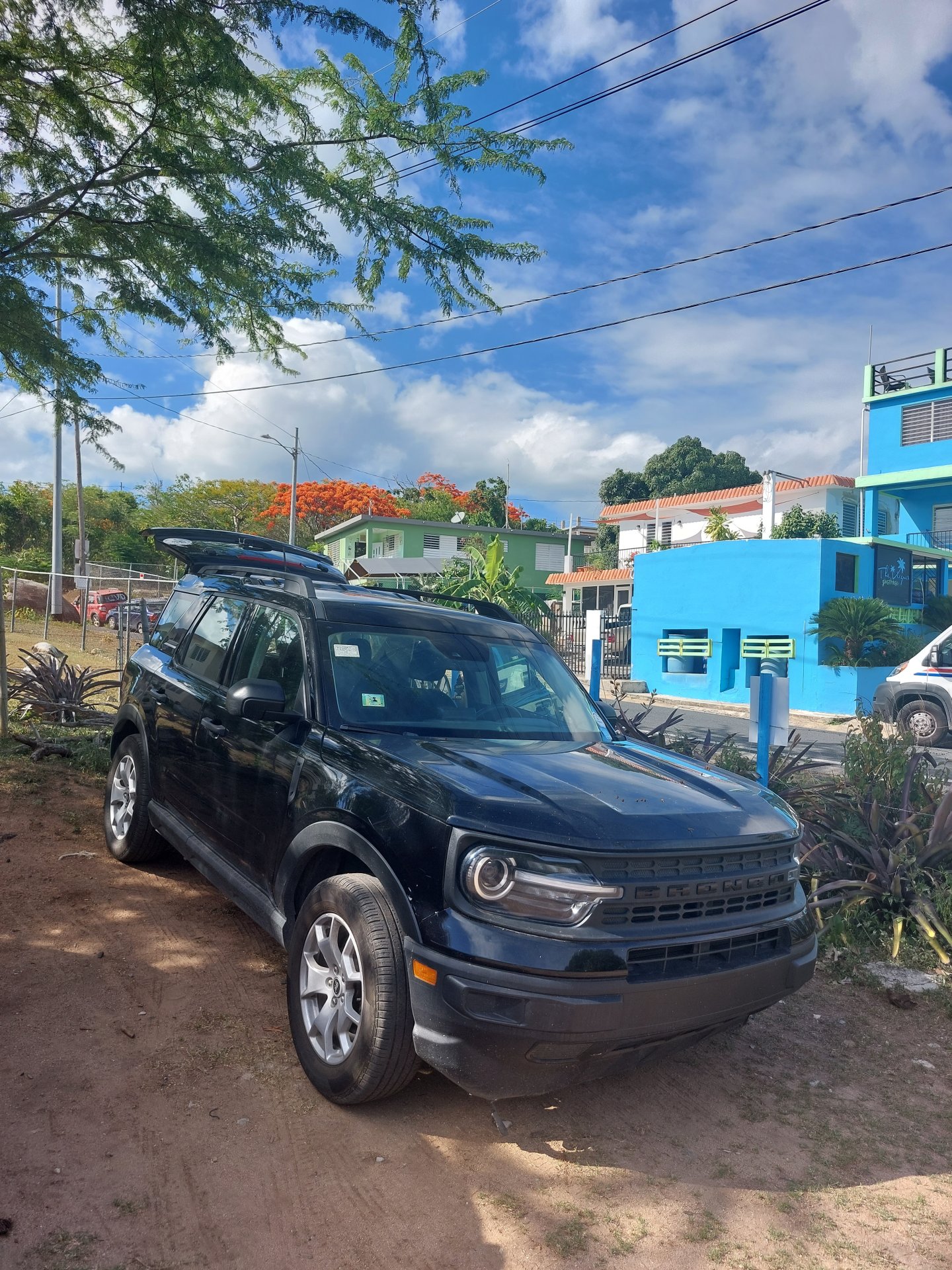 Pojechaliśmy dalej. Nasz terenowy (poniekąd) Ford Bronco miał system android auto, więc bezproblemowo sparował się z telefonem i dzięki temu mogliśmy puścić sobie muzykę ze Spotify na głośnikach auta i nawigację na dużym wyświetlaczu samochodu. Poszło 100 największych latynoskich hitów. Weszliśmy w klimat i podrygując i drąc się „Livin’ La Vida loca” dojechaliśmy w rejony wczorajszej Bio Bay.
