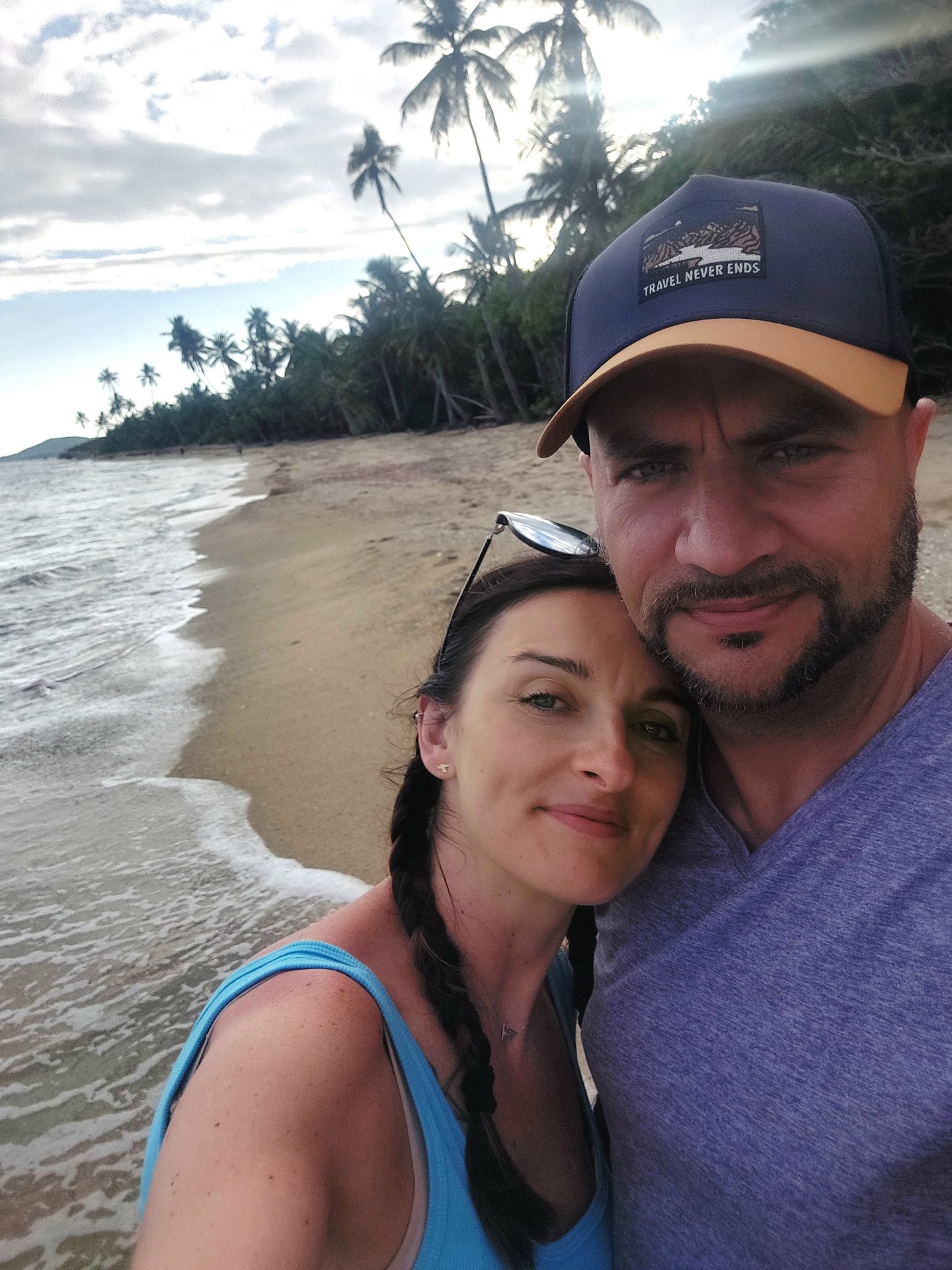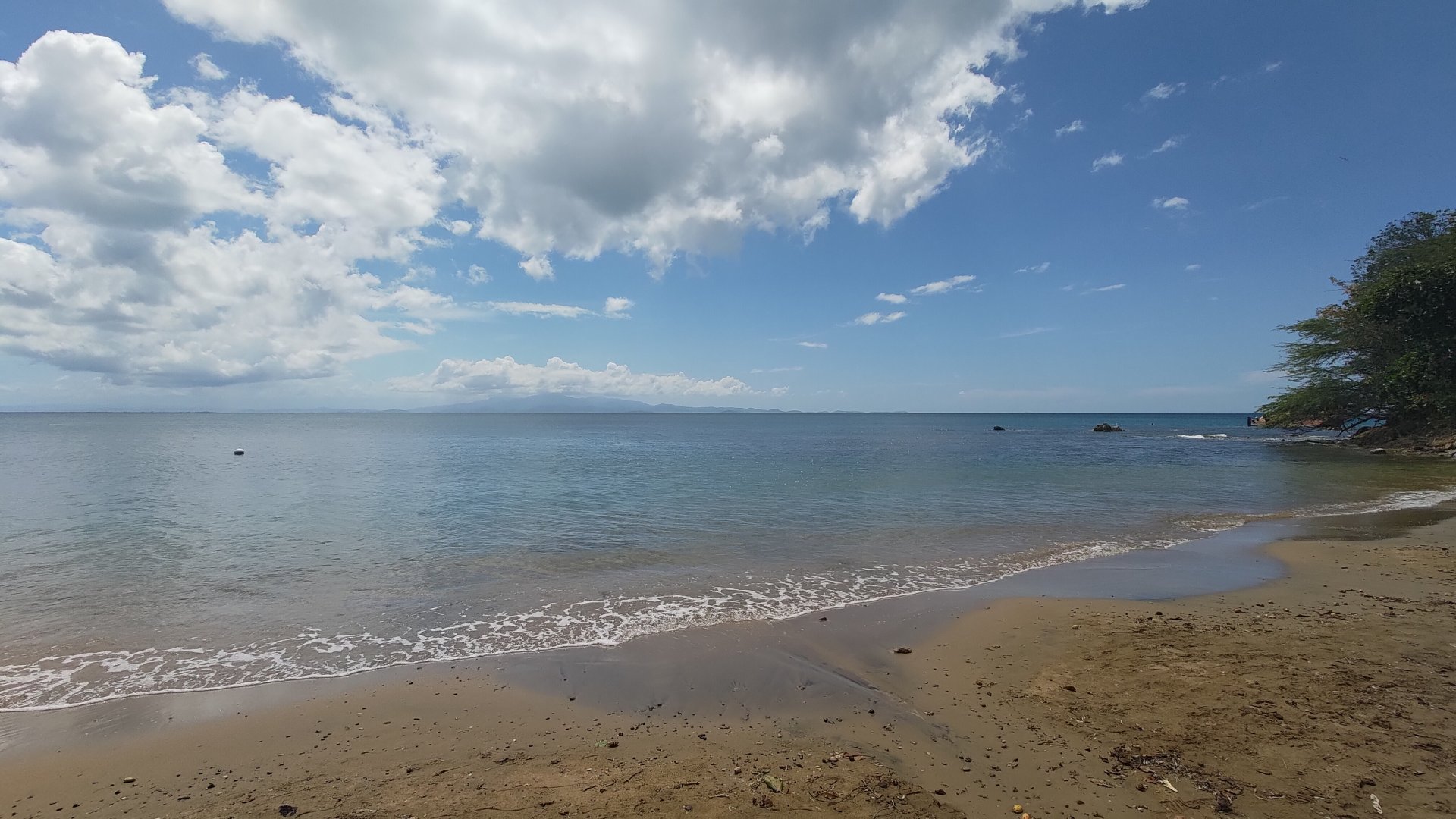 Po relaksie na tej plaży ruszyliśmy naszym dzikim koniem (Bronco czyli dziki koń, dlatego na kierownicy naszego Forda jest logo wierzgającego konia) na kolejną plażę. Pojechaliśmy na mniej popularną, ale chwaloną przez przewodników plażę Media Luna. Dojeżdżając nie widzieliśmy żadnych samochodów zaparkowanych. Postawiliśmy więc naszego Forda w cieniu i ruszyliśmy na podbój kolejnej plaży. Wchodzimy, widzimy plażę podobną do Caracas, ale nieco mniejszą i nieco więcej wysuniętych glonów na jej brzegów. Sprawia to wrażenie jakby plaża była brudna, a to nie jest prawda! Ale najważniejsze było to, że byliśmy na tej plaży absolutnie sami! Nie było nikogo! Cisza, tylko szum fal, słońce nieco schowało się za obłokiem, więc nie smażyło tak niemiłosiernie i my sami w tych pięknych okolicznościach przyrody!