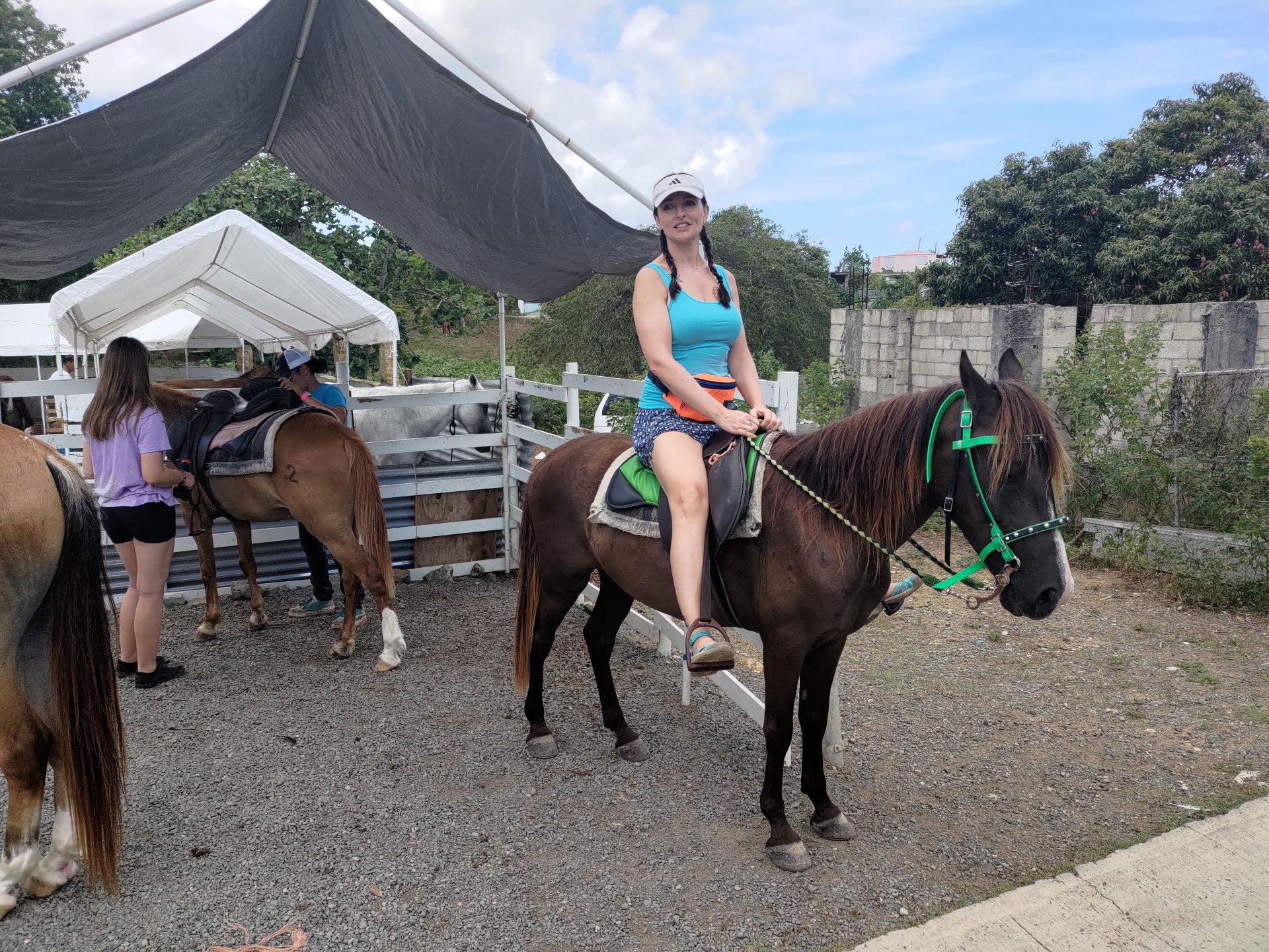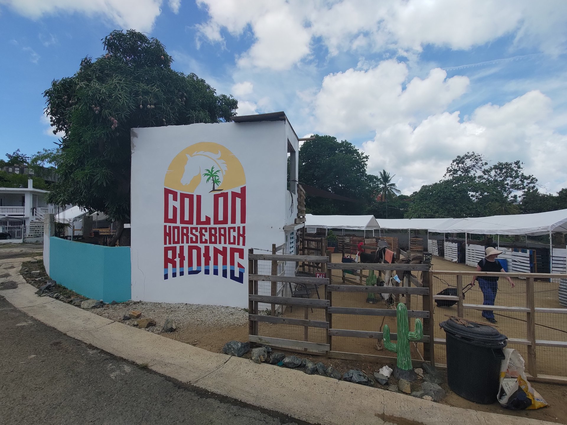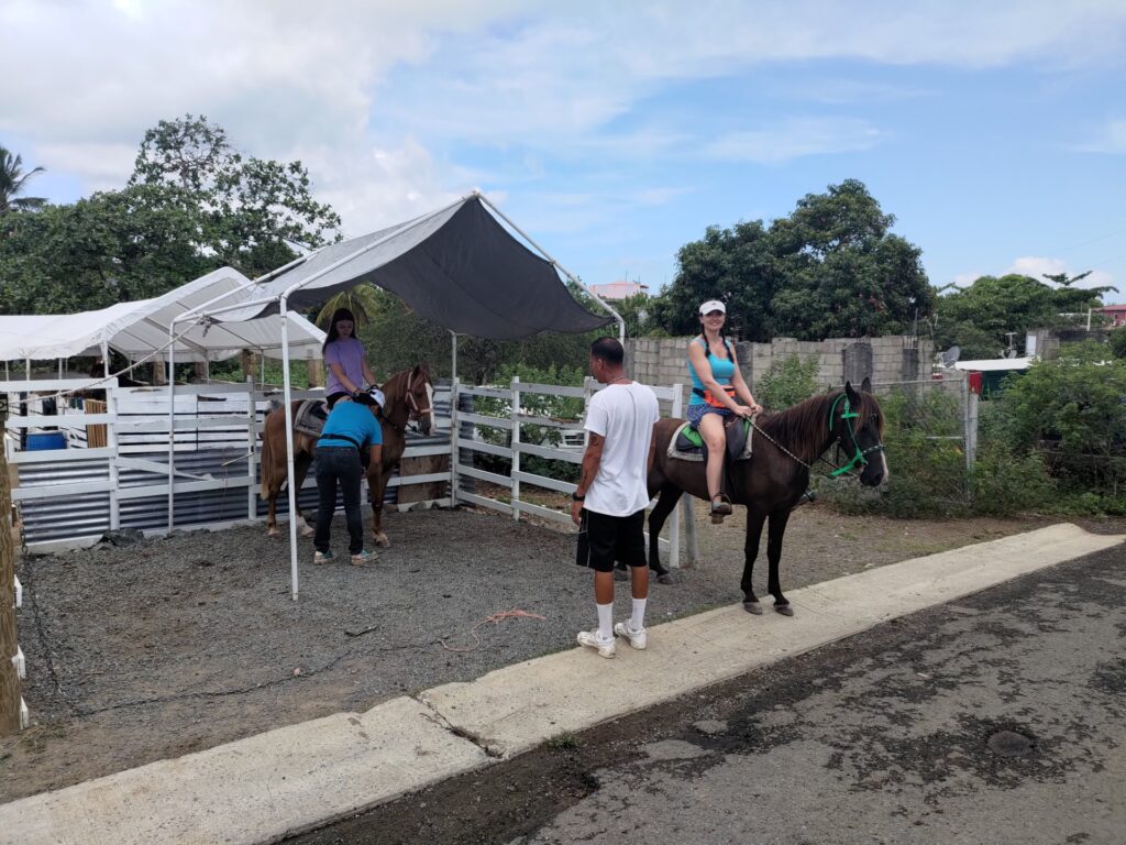 Gdy wysiedliśmy z promu musieliśmy podejść 10 minut pod górkę do stadniny koni „Colon”. Okazało się, że poza końmi w tym „rancho” były też inne zwierzęta. Kozy, kaczki, kury, koguty, psy, koty. Podczas gdy Pati z Jagodą pojechały na przejażdżkę konną, my z Grażyną poszliśmy pozwiedzać miasteczko i napić się kawy.