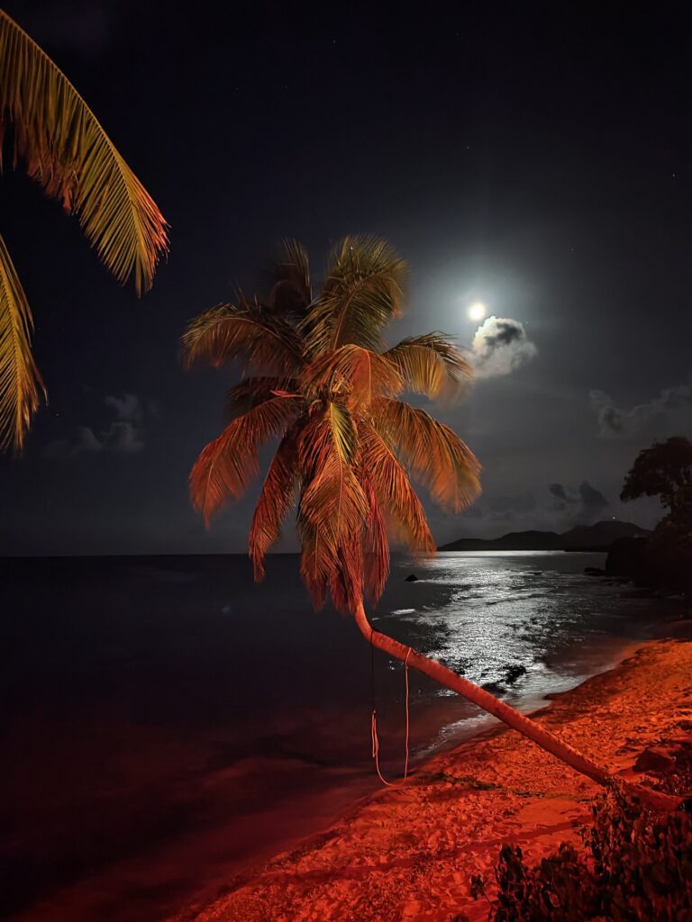 Zgarnęliśmy Pati i Jagodę pod portem i pojechaliśmy do „The Vieques Guesthouse” czyli pokoju w hostelu jaki wynajęliśmy na dzisiejszą noc w części wyspy nazywanej Esperanza. Po drodze co chwilę widzieliśmy dzikie wolno pasące się konie. Odświeżyliśmy się nieco, odpoczęliśmy i poszliśmy na pobliską plażę Esperanza zobaczyć zachód słońca i popstrykac trochę zdjęć. A warto było, bo sceneria wspaniała i huśtawki ktoś założył na palmach głębiej wychodzacych z plaży w kierunku oceanu.