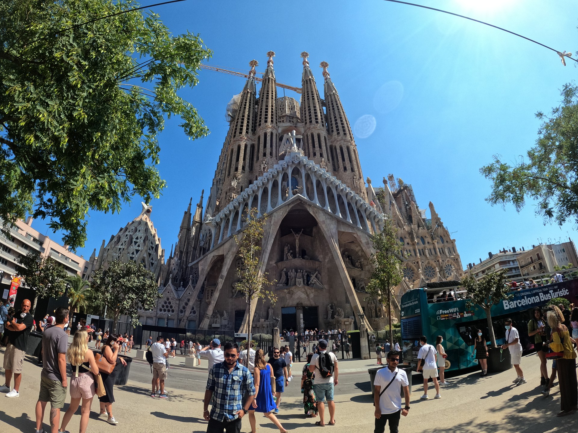 Sagrada Famiglia, to imponujący swoim rozmachem budynek bazyliki, który nadal jest nieskończony. Budowa rozpoczęła się w 1882 roku a od 1883 pieczę nad jej wyglądem i projektem przejął Antoni Gaudi. Nie zajmował się on wyłącznie tą budową. Równolegle budował również wiele innych tak charakterystycznych budynków w Barcelonie. Jego styl jest niepowtarzalny. Dlatego bazylika początkowo neogotycka nabrała wyjątkowego wyglądu i jest obecnie bodaj najbardziej rozpoznawalnym miejscem w stolicy Katalonii. Gaudi zmarł w 1926 roku i od tamtej pory budowę kontynuował jego uczeń. Na przestrzeni lat budowa postępowała wolniej i szybciej w zależności od sytuacji (wojna domowa, wojny światowe…) W ostatnich dwóch latach jednak budowa przyśpieszyła. Jest więc szansa, że jeszcze za mojego życia będę mógł zwiedzić tą bazylikę ukończoną!