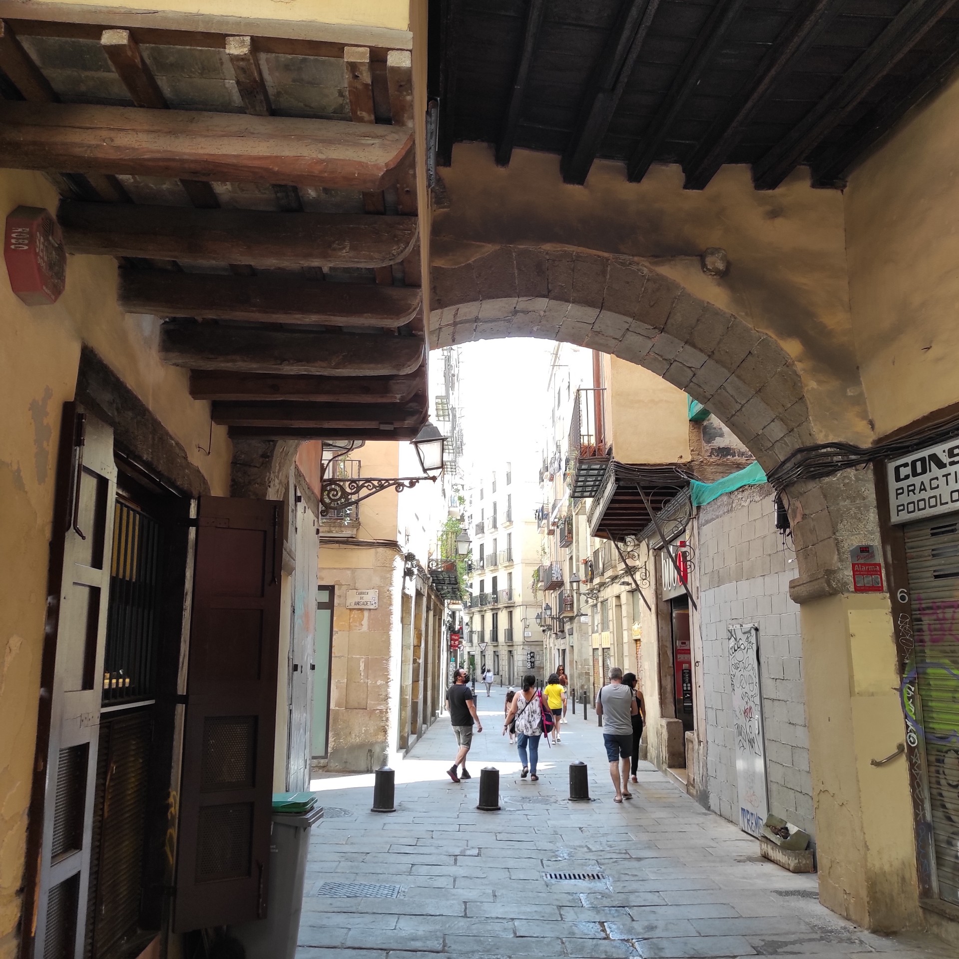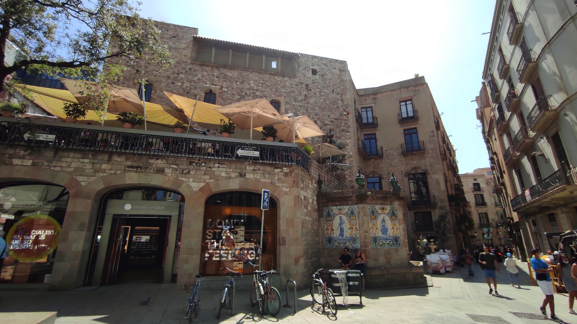 Zjadłem całkiem niezłe lody w Planelles Donat, choć lepsze ostatnio jadłem w Chorwacji… Minąłem Placa de Catalunya aż dotarłem do Katedry św. Eulalii. To już dzielnica gotycka. Mogłem się pokręcić trochę w mrocznych zakamarkach i wąskich uliczkach. Poczuć trochę więcej historii, tej starej niż we wcześniej odwiedzonych miejscach Barcelony. Sant Felip Neri plac był właśnie takim miejscem. To tutaj spadła bomba w trakcie wojny domowej w Hiszpanii.