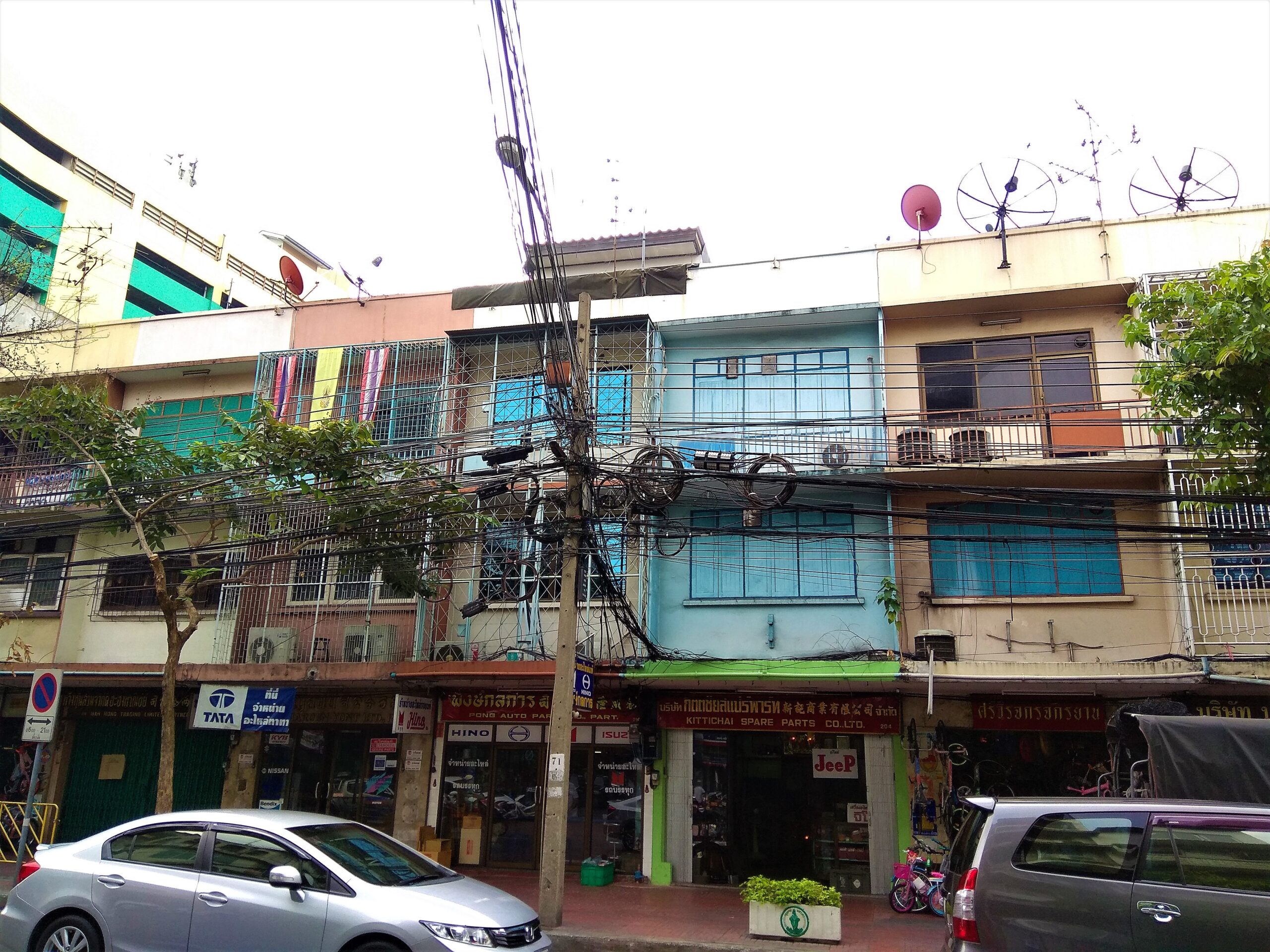 By przedostać się z powrotem przez rzekę, znowu skorzystaliśmy z tramwaju wodnego. Tym razem musieliśmy swoje odstać w dość długiej kolejce a za kurs zapłacić po 4 Bahty. Dalej pieszo ruszyliśmy przez bazary, zatłoczone bardziej i mniej ulice, koło odwiedzonego już przez nas dzisiaj Wat Pho i dalej przez dzielnicę hinduską. Phahurat Road nazywane małymi indiami nie różniły się w moim odczuciu od wcześniej odwiedzonych przez nas ulic. Nie czułem tak opisywanego przez innych „unoszącego się zapachu curry”. Może więcej było osób o hinduskich rysach twarzy, ale nie zauważyliśmy knajpek, ani garkuchni z indyjskim jedzeniem. Może powodem był chiński nowy rok, bo wszędzie lampiony, czerwono-złote ozdoby, duuużo ozdób. W miarę jednak, im bliżej było nam do Yaowarat, czyli chińskiej dzielnicy, tym więcej i napisów chińskich i ogólnie coraz bardziej chińsko się robiło. Musieliśmy jednak przeczekać dość gwałtowny deszcz, który sobie nagle lunął. Na szczęście znaleźliśmy zadaszenie pod kładką dla pieszych umieszczoną nad drogą. Nie wiedzieliśmy jak długo będzie padać, więc jak się trochę deszcz uspokoił ruszyliśmy śpiesznie szukając restauracyjki, żeby coś zjeść i schronić się przed deszczem. Tak dotarliśmy do Chinatown.