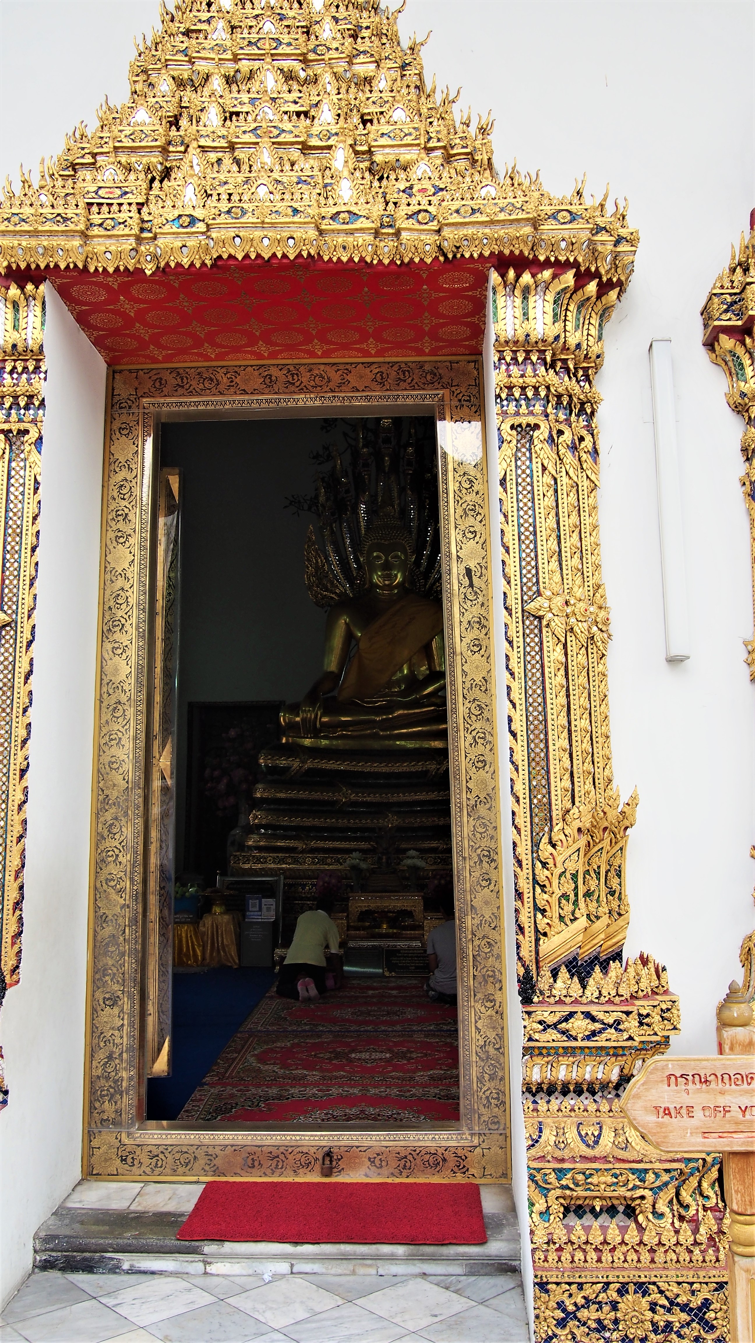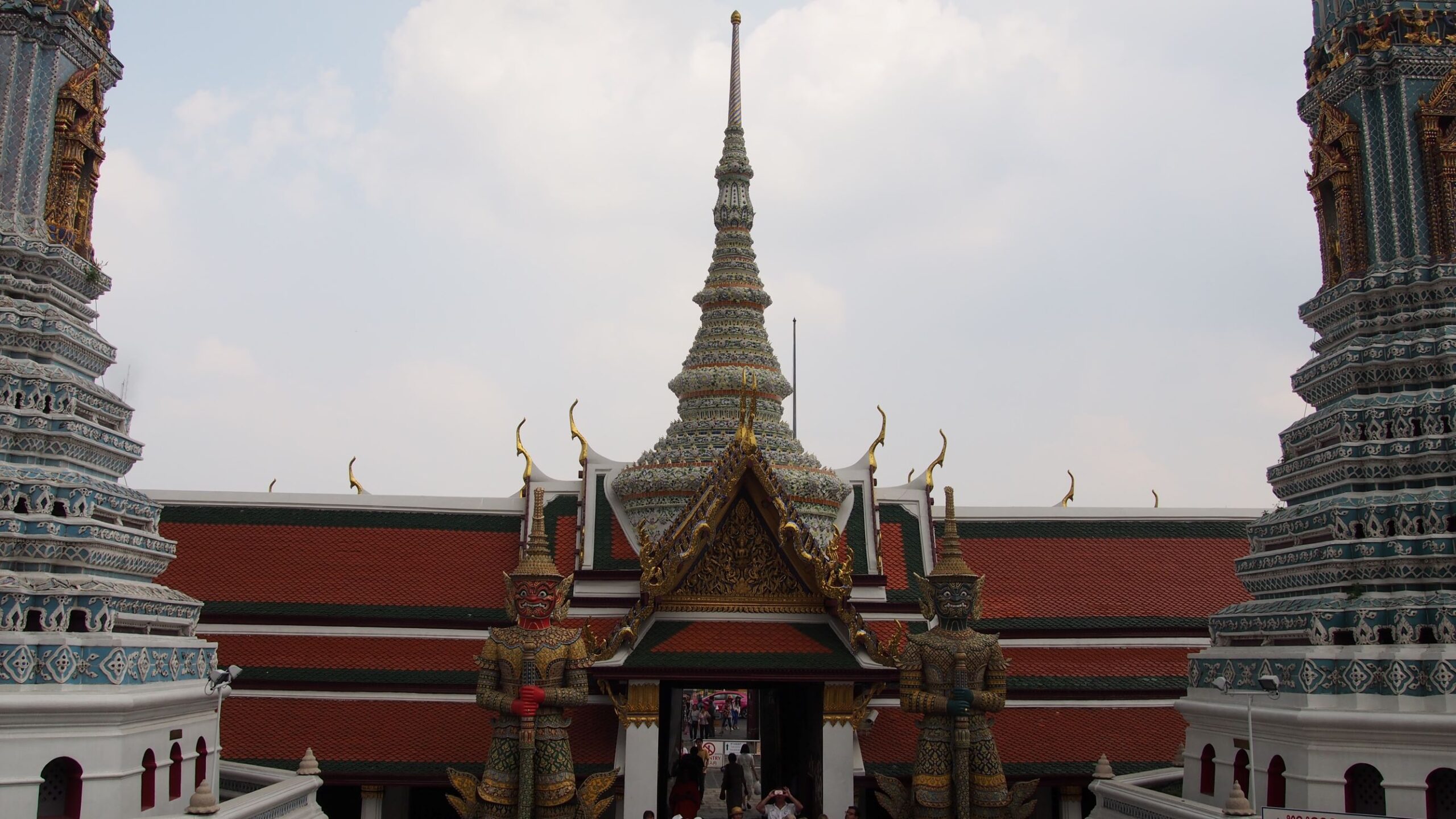 To jedno z najczęściej odwiedzanych miejsc przez turystów w tym mieście. Wybraliśmy właśnie tą świątynię, bo z naszego hostelu mamy tutaj najbliżej. Wybór tej Świątyni na pierwszy punkt naszego zwiedzania okazał się później być zarówno dobry jak i niedobry. Dobry, bo nie szliśmy z „głównym nurtem ruchu turystów”, więc nie musieliśmy się dostosowywać do ich niemrawego tempa. Zły, bo jak się później okazało, gdybyśmy zaczęli właśnie od Zamku Królewskiego ze Świątynią Szmaragdowego Buddy, to nie musielibyśmy nadrabiać sporo drogi, by obejść cały kompleks królewski po to by dostać się do ogromnej kolejki do wejścia. No ale tego jeszcze wtedy nie wiedzieliśmy.