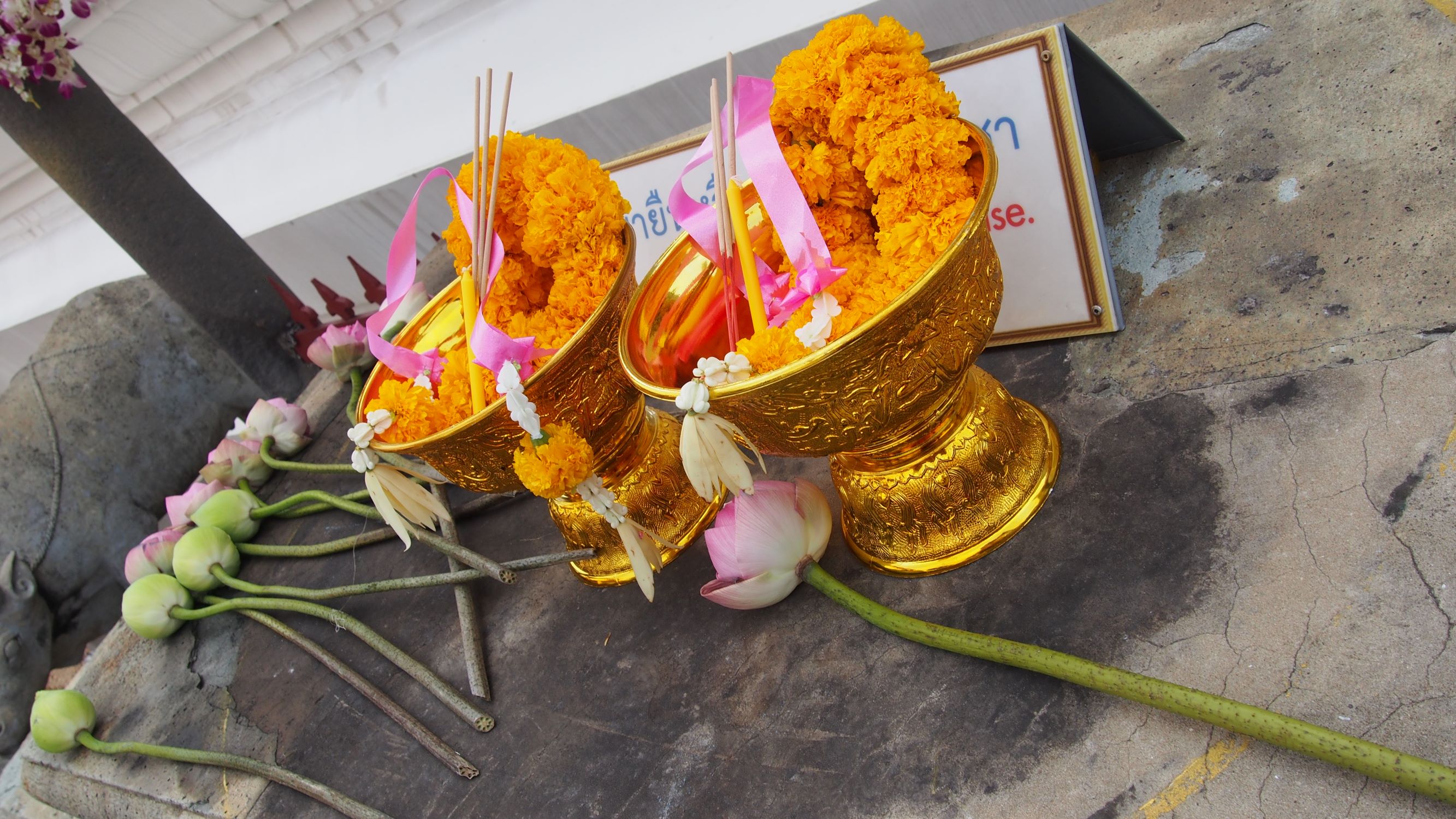 Idąc do Świątyni Odpoczywającego Buddy podobnie jak wczoraj zwróciliśmy uwagę na jedyne miejsce z choinkami, reniferami, prezentami i sztucznym śniegiem na skrzyżowaniu nieopodal naszego hostelu. Moją uwagę przyciągały plątaniny kabli na słupach. Sporo z tych kabli było światłowodowych ale sporo też i miedzianych – ot takie zboczenie zawodowe regionalnego operatora telekomunikacyjnego.